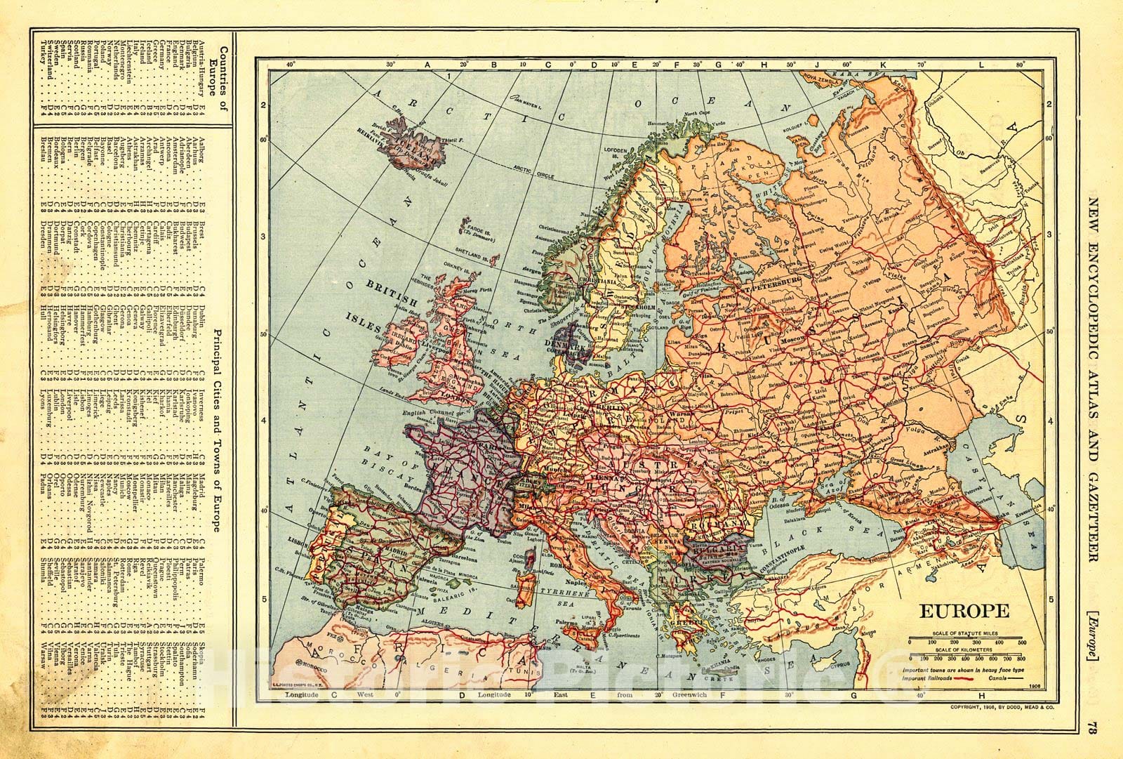 1909 Antique EUROPE Map Vintage Collectible Map of Europe Gallery